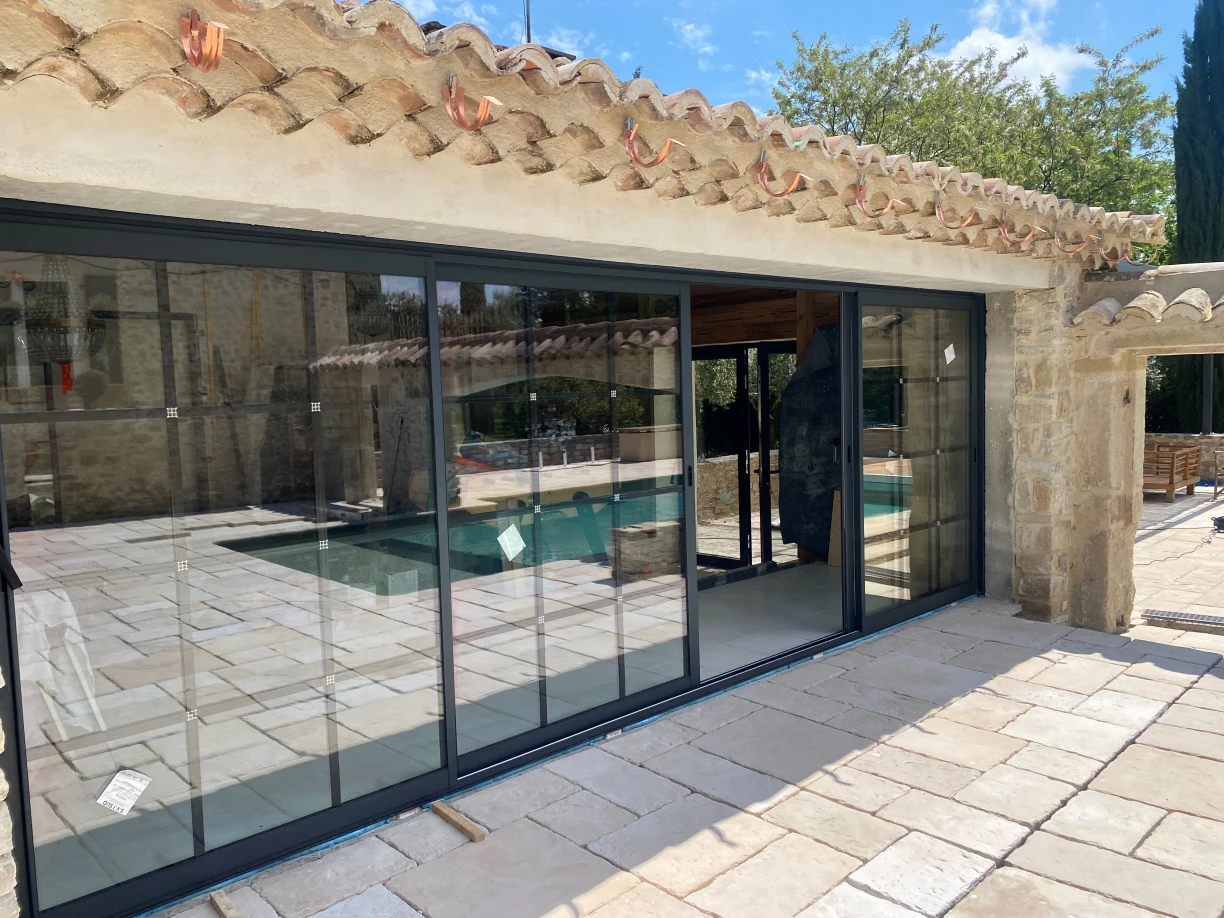 Installation d’un coulissant aluminium RAL 7016 à Richerenches (84)