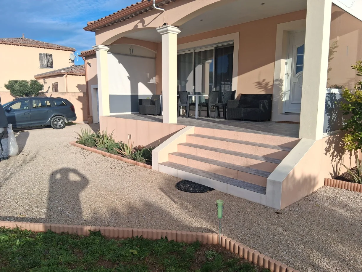 Vue latérale droite du garde-corps sur l'escalier de la terrasse